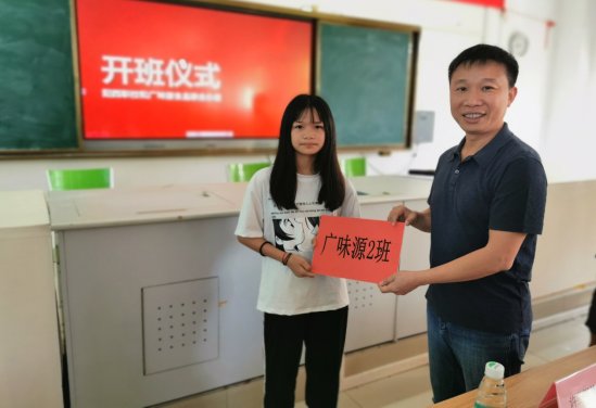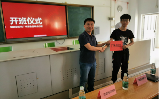 廣味源公司許業(yè)裕總經(jīng)理為校企合作的兩個(gè)班授班牌。