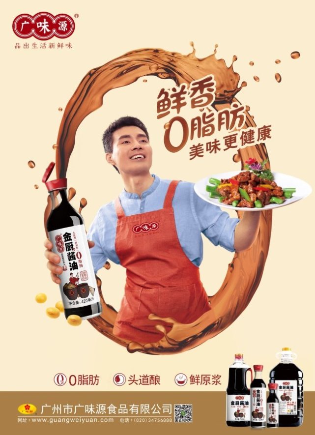 品牌年輕化的根基在于產(chǎn)品。2020年,廣味源的明星產(chǎn)品“0脂肪金廚醬油”全新上市,作為國內(nèi)首款0脂肪醬油,金廚醬油一上市就受到年輕人的追捧,在顏值方面,消費者被金廚醬油的觀音瓶和外部IP形象所吸引;另一方面,Z時代年輕人崇尚輕食主義,0脂肪對于他們有著極大的“殺傷力”;遠(yuǎn)不僅于此,金廚醬油保留傳統(tǒng)的“高鹽稀態(tài)”發(fā)酵技術(shù),經(jīng)180天以上日曬夜露的釀造,提取天然浸釀的第1道原油(廣州人俗稱”頭抽“)精心慢工釀造,其氨基酸態(tài)氨含量1.3g/100ml處在行業(yè)頂尖的水平,遠(yuǎn)超國內(nèi)0.8g/100ml的特級標(biāo)準(zhǔn)。由于可溶性無鹽固形物高(高于釀造醬油國家標(biāo)準(zhǔn)中”特級醬油可溶性無鹽固形物≥15.0g/100ml“的標(biāo)準(zhǔn)要求的70%),所以汁濃色紅、口感豐富、鮮甜柔滑、自然鮮香,每一口都是新鮮味。(可溶性無鹽固形物,指的是醬油中除水、食鹽、不溶性物質(zhì)外的其他物質(zhì)的含量,主要是蛋白質(zhì)、氨基酸、肽、糖類、有機(jī)酸等物質(zhì),是影響風(fēng)味的重要指標(biāo)。)