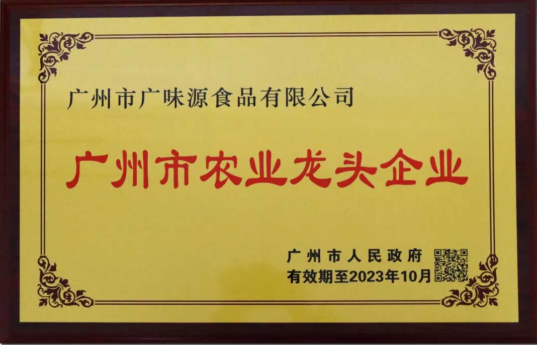 重磅喜訊!廣味源被評為2020年廣東省級和廣州市級的重點農(nóng)業(yè)龍頭企業(yè)
