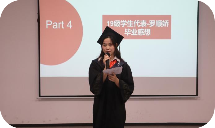 19級畢業(yè)生代表康智焱 19級畢業(yè)生代表羅順嬌