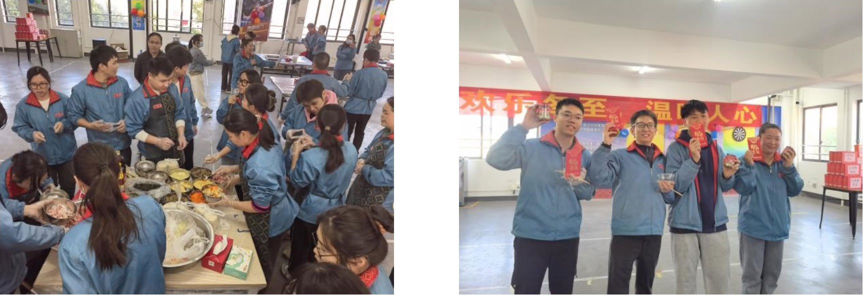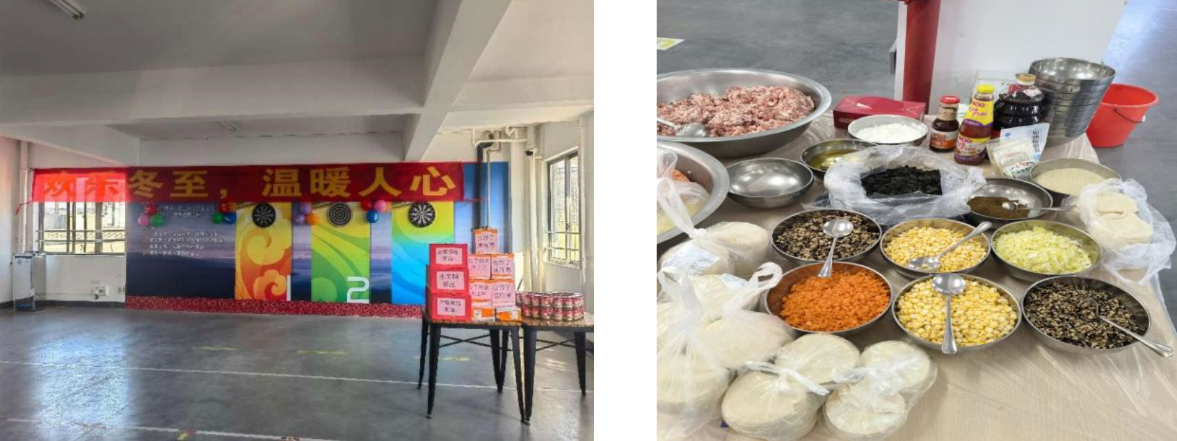 13:30,在各部門的鼎力配合下,員工文體中心活動現(xiàn)場布置完畢,行政部為冬至活動準(zhǔn)備了豐富的食材,包括:新鮮餃子皮、精選肉餡和各式蔬菜,還有公司的調(diào)味品等等,讓每位參與活動的員工都能親手做出自己喜歡的味道。