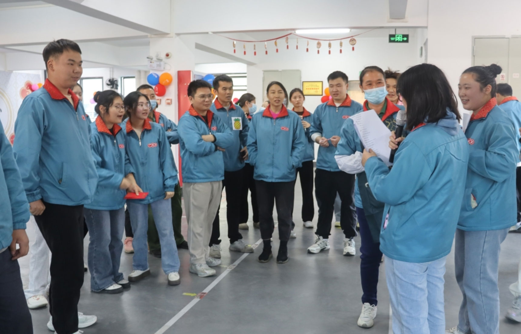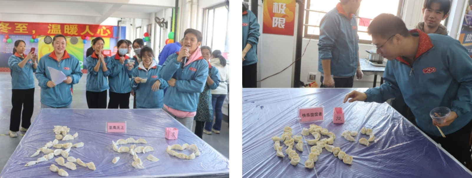 14:25,所有參與活動的參賽隊伍、領(lǐng)導(dǎo)和觀眾到達現(xiàn)場,14:30主持人宣布冬至活動開始。行政部施華經(jīng)理作開場致辭,并祝大家冬至快樂。接著,主持人介紹了本次活動的具體流程,一共有6項活動:團隊賽(包餃子速度比賽,餃子創(chuàng)意大比拼,占鋸領(lǐng)地、水果蹲),個人賽(歇后語猜猜猜、踩氣球游戲)等。