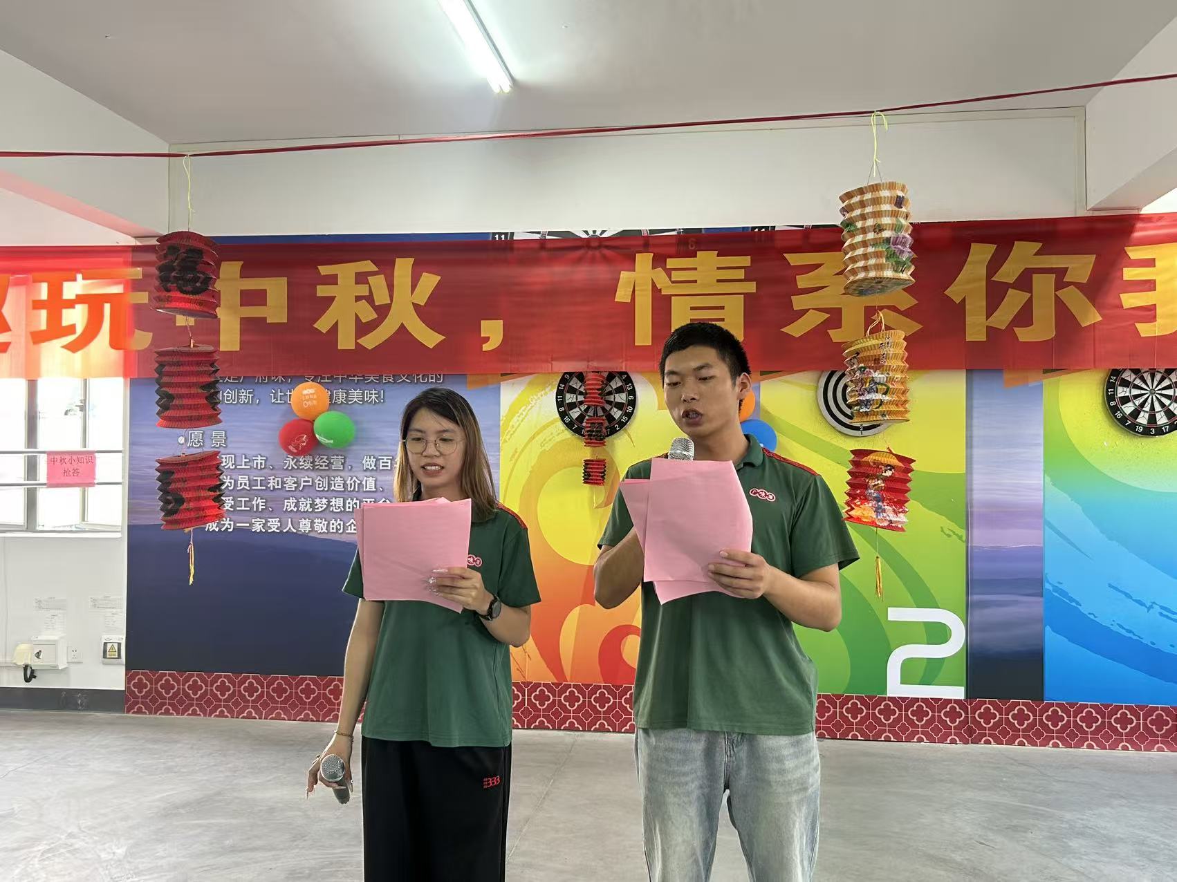15:00分,活動(dòng)在主持人(楊正林、何楚宜)熱情洋溢的開(kāi)場(chǎng)白中正式拉開(kāi)帷幕。行政部施華經(jīng)理上臺(tái)致辭,向全體員工及家屬致以節(jié)日的誠(chéng)摯祝福。她表示,中秋象征著團(tuán)圓與豐收,希望通過(guò)今天的游園活動(dòng),讓大家在歡樂(lè)的氛圍中感受傳統(tǒng)文化魅力,增進(jìn)彼此情誼,共同祝愿廣味源這個(gè)大家庭越來(lái)越好。